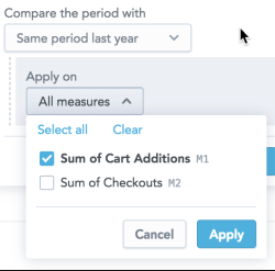 In the Apply on dropdown, select measures that you want to compare and click Apply.
