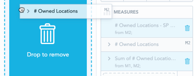 You can change the comparison only in Data Explorer. On KPI Dashboards, you can change the period that the insight displays. If you remove the original measure, the derived measure (previous period or same period previous year) and measures derived from it are also removed. When you drag the original measure to the Data Catalog, Data Explorer highlights all the measures to be removed and then displays a message.