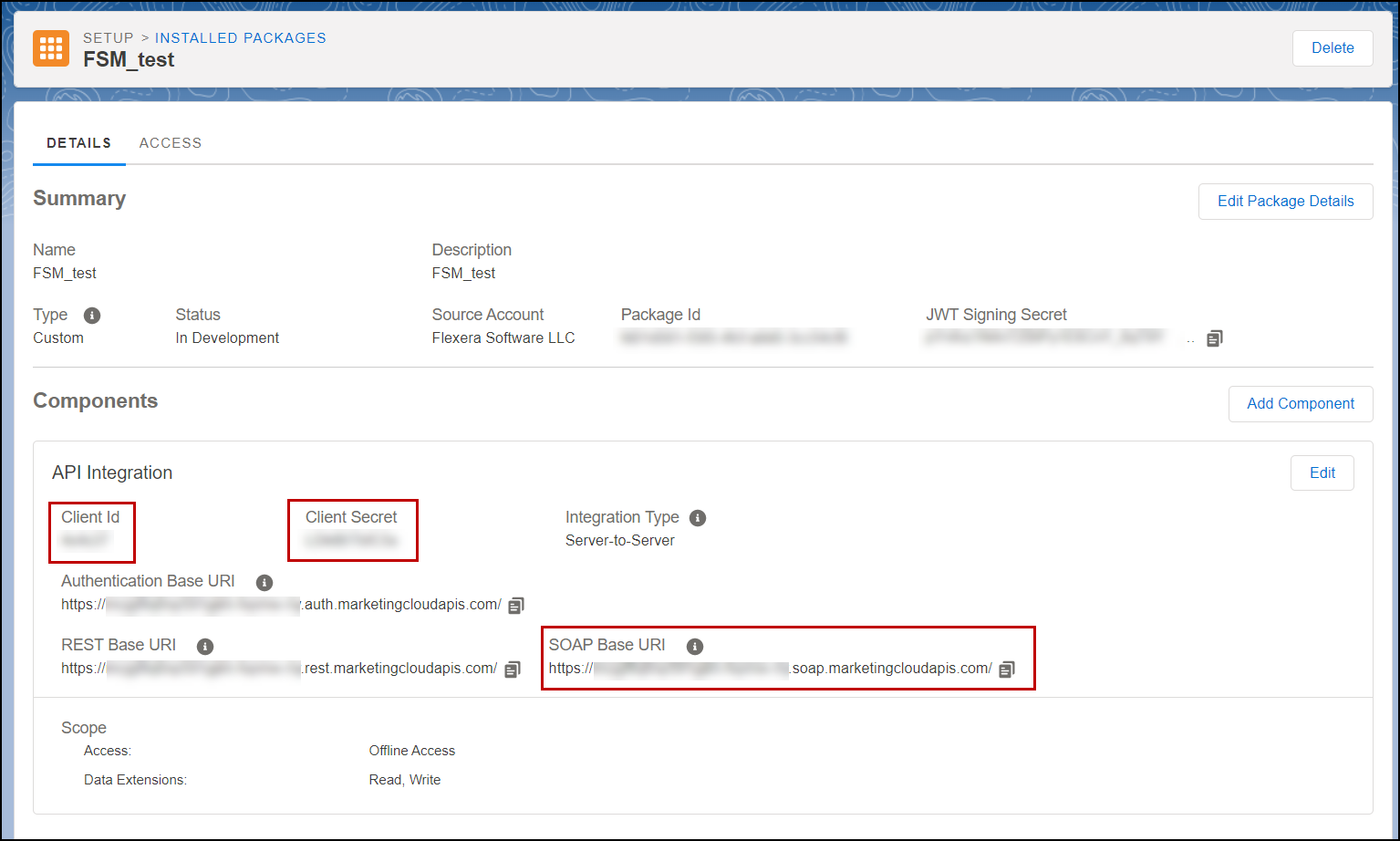 - To obtain the Salesforce Marketing Cloud Client ID, Client Secret, and ServiceURL values: